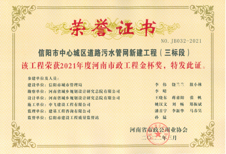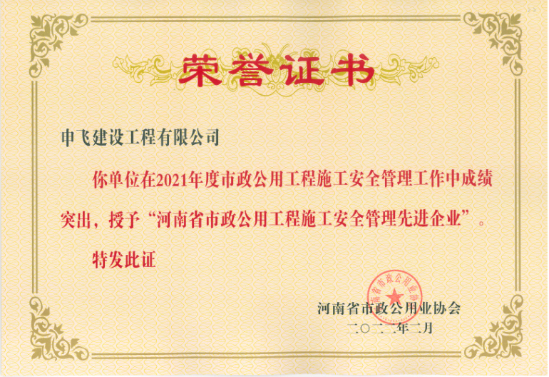 • [04-12]申飛建工再獲“省先進施工企業”、 “市政金杯獎”等多項榮譽